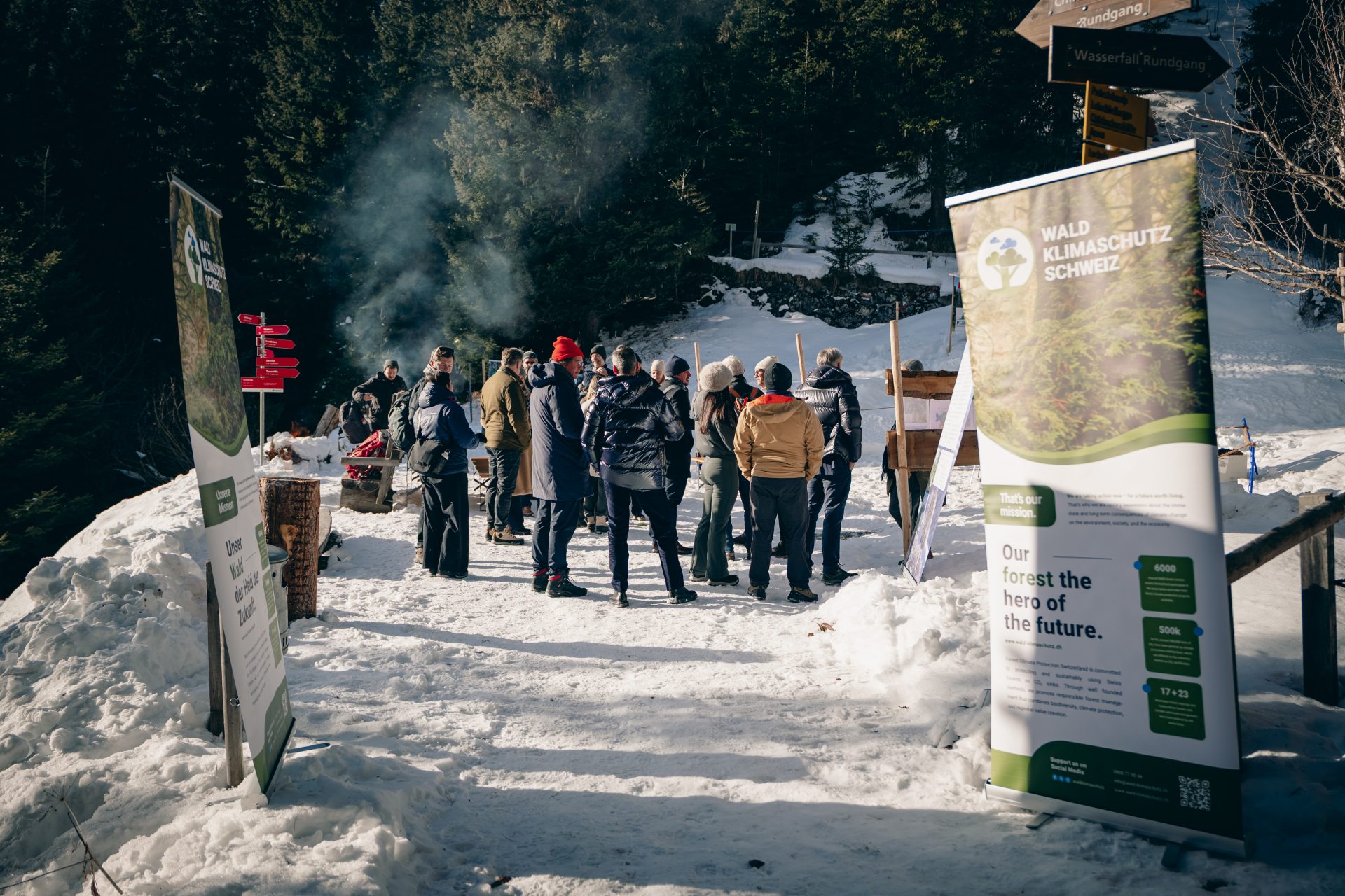 Wo könnte man die Rolle des Waldes im Klimaschutz besser erklären als direkt im Wald? Am 22. Januar 2026 war das für Interessierte im verschneiten Davoser Wald möglich! Auch 2026 waren wir gemeinsam mit Pina Earth während des World Economic Forum (WEF) vor Ort und luden zu unseren beliebten Winter Forest Walks in Davos ein.